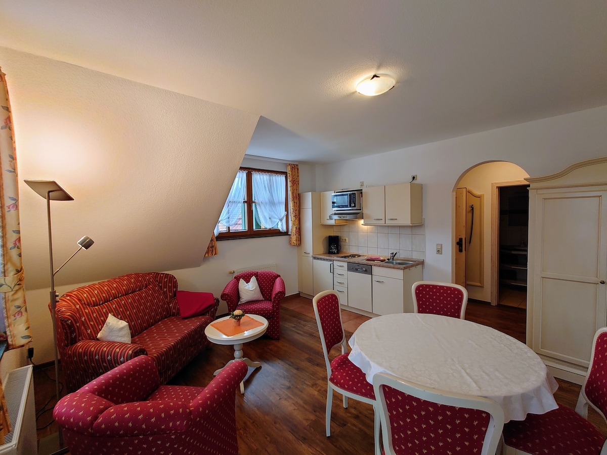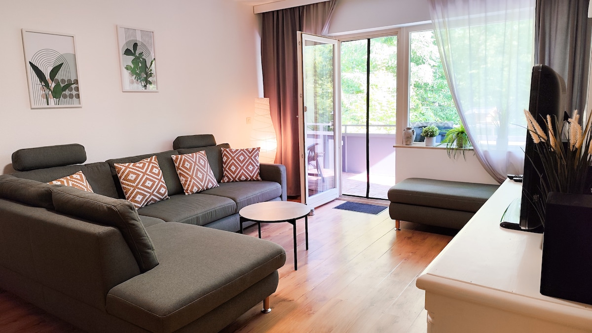 Bienvenue dans l'appartement bien-être FitNest Plonge dans un monde de légèreté et de plaisir naturel. Notre appartement moderne est situé au cœur de Bad Sachsa, une charmante station thermale avec une touche moderne, et est la maison idéale pour des vacances détendues. Commencez la matinée avec de l'air frais de résine sur votre propre balcon et profitez du panorama doux de la montagne. Ensuite, le petit coin fitness t'attend – ici, tu peux facilement combiner sport et vacances.