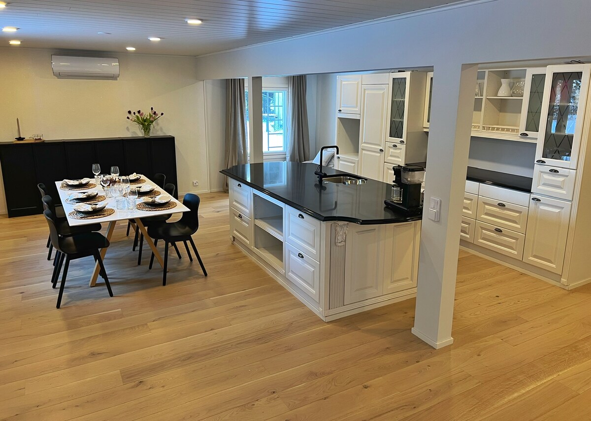 100 years old, completely renovated and full of feeling log house Doctors Villa O'Espesial in the beautiful Hanko (Tvärminne), Finland. Renovated to an ecohouse in 2020 with traditional methods🧡 The house used to be a local shop, later renovated to a home. An open space living room & kitchen downstairs with a cozy fireplace. Three bedrooms upstairs, with 7 sleeping places + extra beds possible, so room for even a bigger band :-)