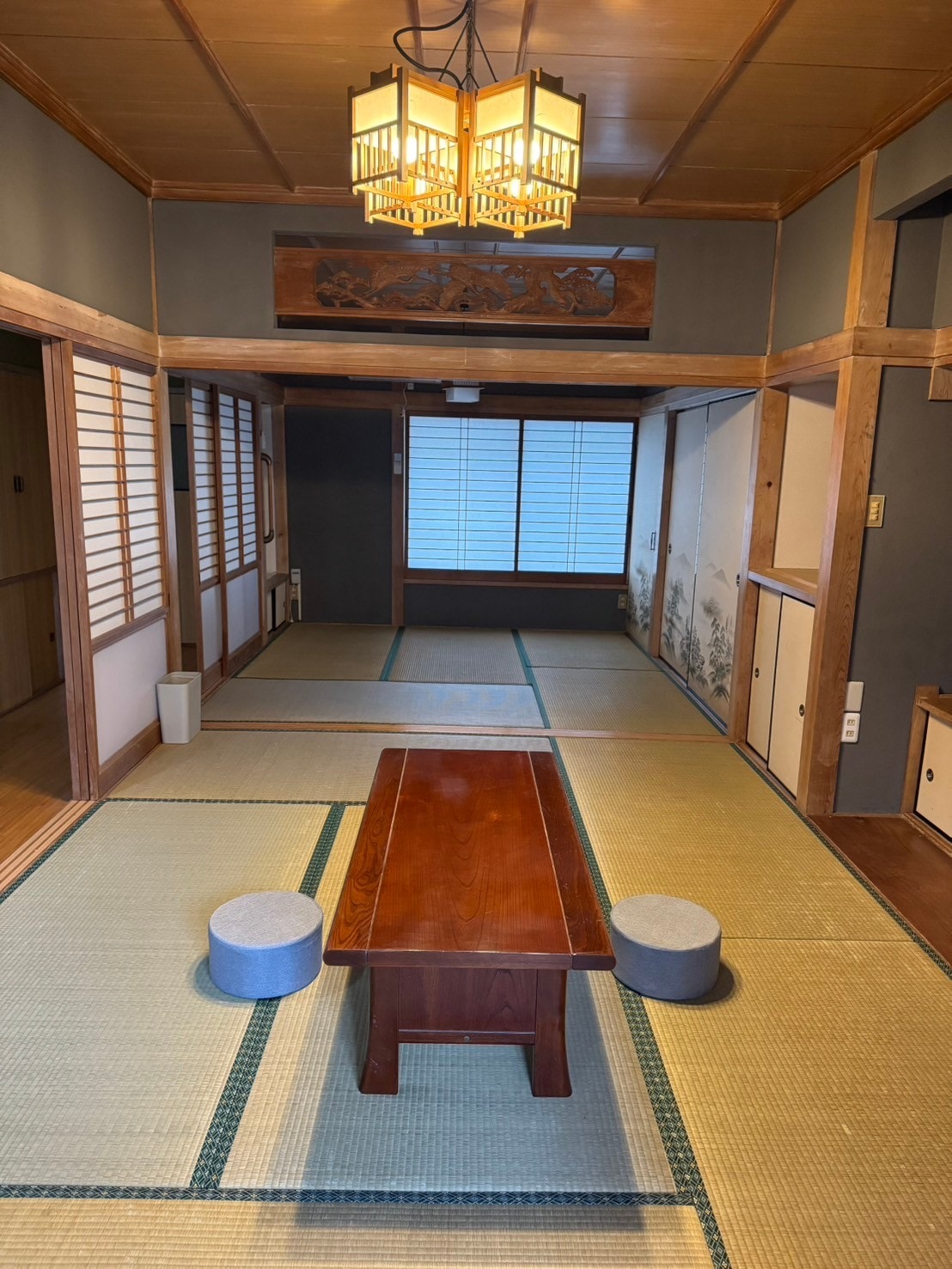 Le bâtiment était une ancienne maison privée rénovée à la campagne. Vous pouvez sentir la nostalgie de l'espace où vous pouvez sentir la vieille vie, comme une longue véranda, un grand salon en tatami et un bain en bois. À perte de vue, il y a aussi une terrasse en bois qui peut être utilisée en toute confiance même par temps pluvieux dans la cour, qui est un espace privé écrasant avec seulement des montagnes, des champs et des pentes. Il y a des places pour garer les véhicules. Entièrement équipé avec le wifi. De plus, il ne s'agit que d'un séjour d'hébergement, et il faut environ 20 minutes en voiture pour le supermarché et la supérette les plus proches, donc j'aimerais que vous veniez à l'avance lorsque vous viendrez. Des ustensiles de cuisine, une cuisinière, du charbon de bois, etc. sont disponibles ici.
