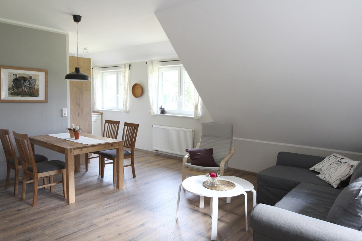 Bienvenue dans notre charmant appartement de vacances, idéal pour une pause confortable avec toute la famille. Niché dans le calme idyllique d'une ancienne ferme rénovée avec amour, notre logement offre un havre de paix. L'atmosphère familiale vous invite à laisser les soucis du quotidien derrière vous et à profiter pleinement du temps précieux avec vos proches. Ici, vous pouvez vous reposer et laisser l'idylle rurale opérer sur vous.