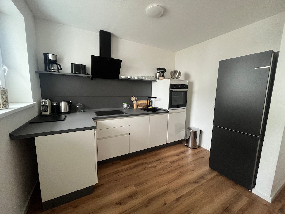 Appartement de vacances avec une touche moderne dans les vieux murs. Notre appartement de vacances élégant peut accueillir 4 adultes ou 2 adultes + 3 enfants. Sur notre vaste propriété, vous avez votre propre espace, ici vous pouvez faire un barbecue ou tout simplement vous détendre. Le château d'Eltz et la Moselle/Hatzenport sont à 5 minutes. Il y a des commerces, des restaurants et une piscine extérieure à Münstermaifeld. W-Lan, les serviettes et le linge de lit sont inclus dans le prix.