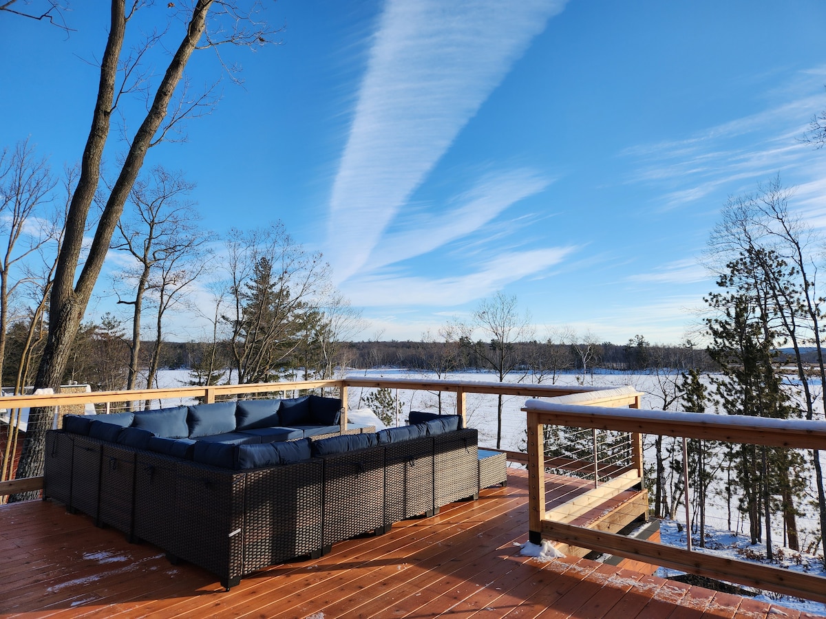 Bienvenue à The Backwater, une escapade toute l'année nouvellement construite et conçue par un architecte sur Pike Lake à Amery, WI. Niché à l'arrière d'une baie calme et remplie de nénuphars regorgeant d'animaux sauvages, notre chalet est la destination idéale pour les voyageurs qui apprécient le design original et qui ont envie d'une expérience unique. Nos équipements sont luxueux, mais notre attitude est de se détendre dans nos fouilles confortables et créatives pleines d'ambiance nostalgique et vintage. Venez séjourner et jouer sur la baie tout en profitant de Polk Co. ! Suivez @thebackwater_wi sur IG