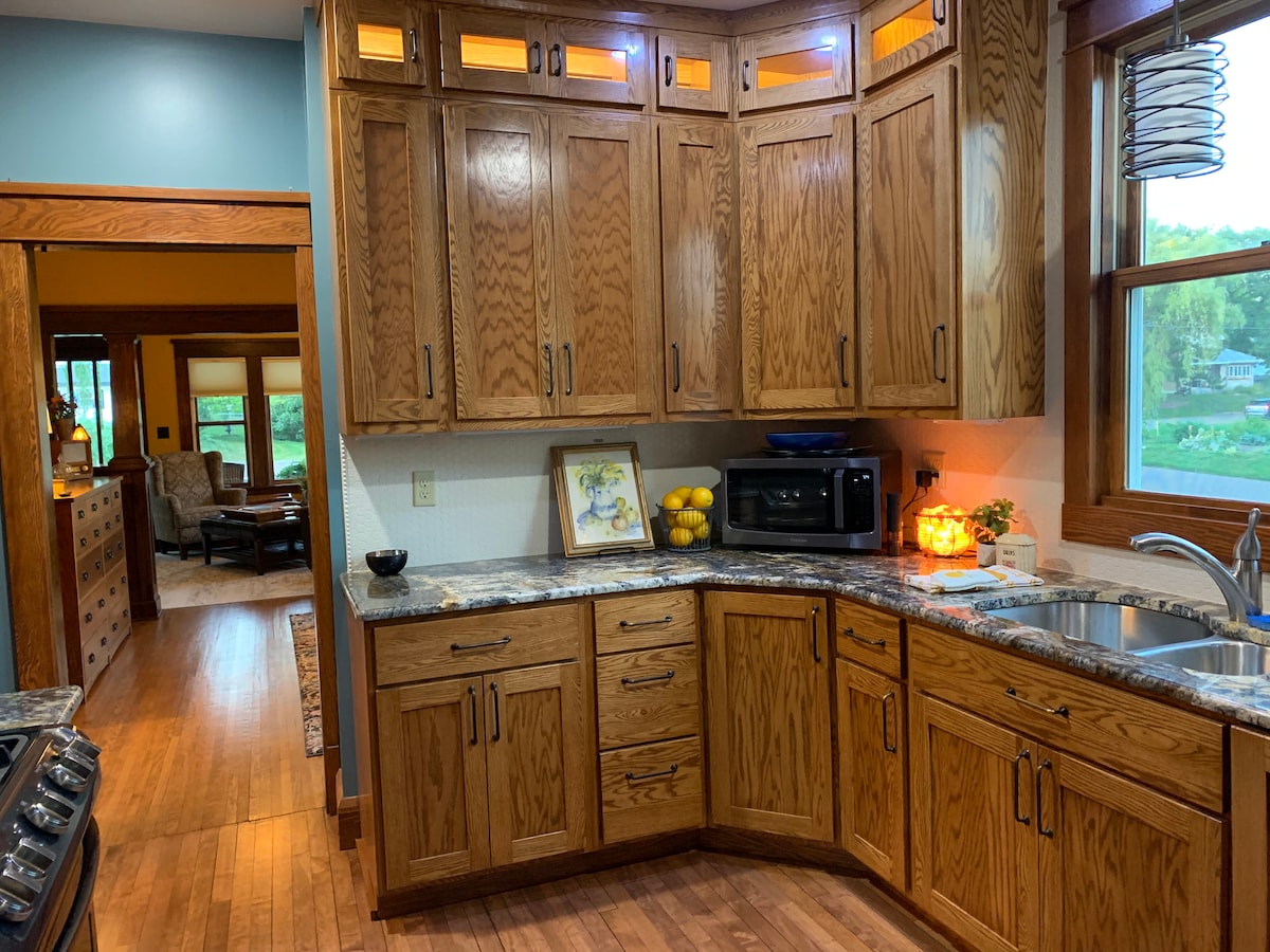 Cette belle maison bleue se trouve au sommet d'une belle colline, d'où le nom de Blueberry Hill. Construite en 1917, cette authentique maison de style artisanal présente une architecture, un mobilier et des couleurs d'époque avec une attention particulière aux détails. Cette maison située au centre se trouve juste en haut de la colline des deux entreprises de Churchill où ils vous couvrent pour le petit déjeuner, le déjeuner et le dîner. The Dock Coffee et Round Man Brewing Co. Et... nous sommes très fiers de nos lits et de notre literie de luxe, qui vous assurent la meilleure nuit de sommeil.