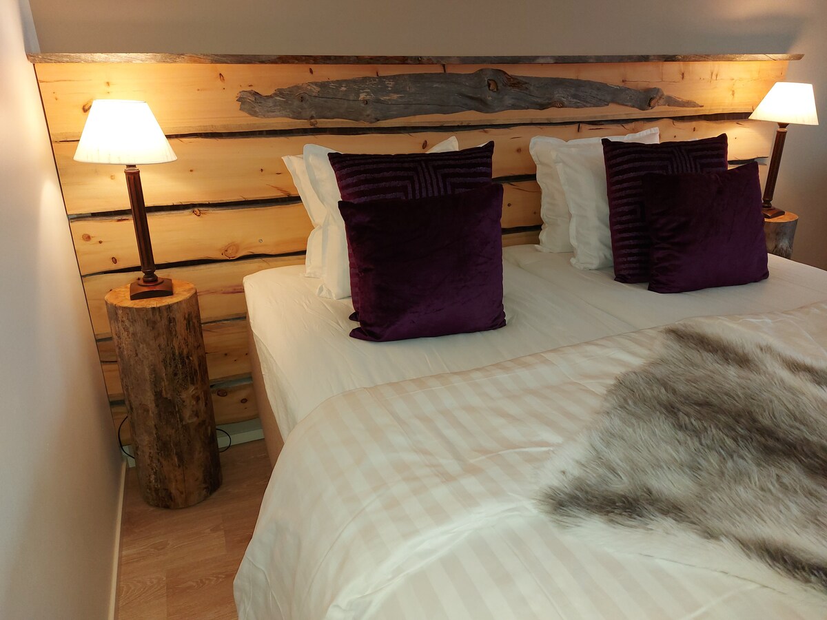 Appartement au deuxième étage relié à une nouvelle maison individuelle. Entrée privée. Climatisation. En bordure d'une forêt dans un nouveau quartier résidentiel du nord d'Oulu. Parfaitement adapté aux vacances et aux voyages d'affaires. Une excellente escale pour ceux qui voyagent vers le nord ou le sud. Vous permet de profiter à la fois des services de la nature et de la ville. Bienvenue dans le milieu arctique paisible ! Appartement de 36 m2+salle de bain 6 m2. Lit King Size double/simple de haute qualité, canapé convertible et lit d'appoint. Mini cuisine. Code verrou sur la porte. Parking gratuit.