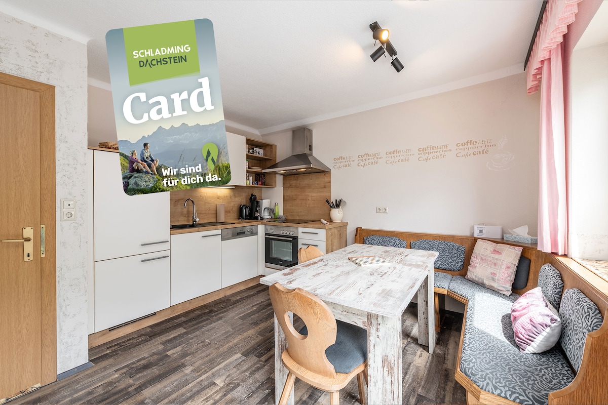 L'appartement moderne Glücksthaler est situé dans la petite ville d'Aich, très proche de Schladming et fait partie de la région de vacances de Schladming Dachstein. Avec 2 chambres, 2 salles de bains avec douche et un grand salon confortable, une cuisine ouverte et une cheminée, c'est la maison de vacances idéale pour toute la famille. La maison dispose de sa propre piscine, où vous pourrez vous rafraîchir en été.<br>L'appartement de vacances est situé dans un endroit calme et offre une vue magnifique sur les montagnes environnantes.