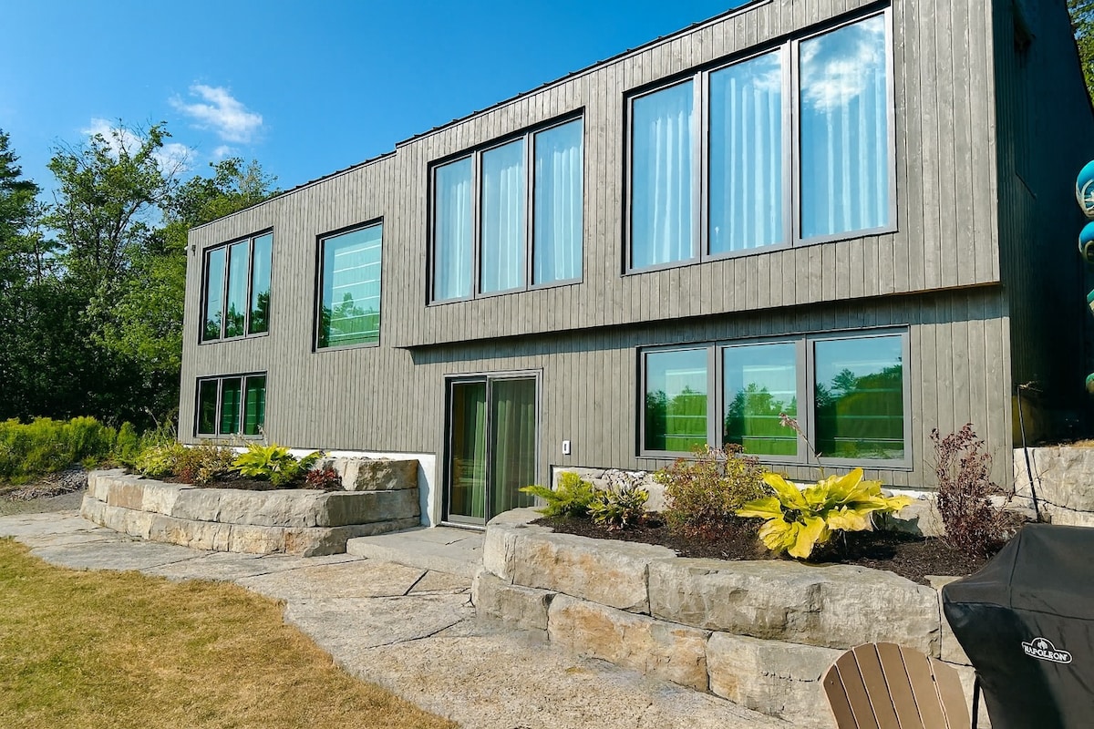 Profitez d'une vue panoramique sur le lac Lower Buckhorn en famille ! Détendez-vous dans le jacuzzi perché au sommet des rochers du Bouclier canadien, niché parmi les grands pins. Ce chalet au bord de l'eau récemment rénové dispose de 3 chambres et d'un espace de vie ouvert. Plus de 280 pieds de front de mer pour profiter du lever et du coucher du soleil et pêcher sur le quai ! Installez-vous confortablement sur le canapé, jouez à des jeux ou regardez des films. Promenez-vous autour de l'île. Bonjour, Wi-Fi pour travailler ou jouer. À 6 minutes de la ville, à moins de 2 heures de la région du Grand Toronto.