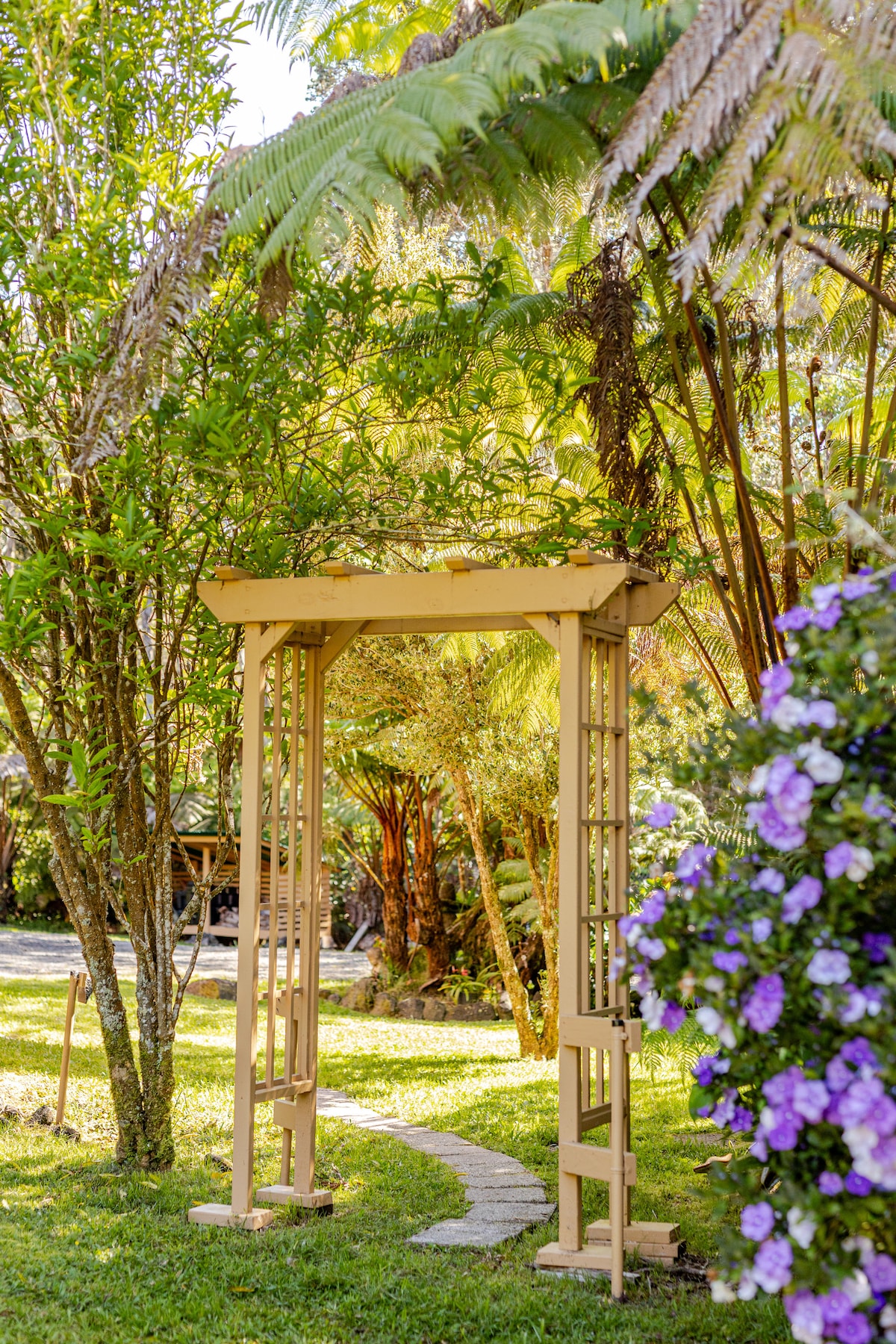 VOTRE CHALET PRIVÉ PARMI LES FOUGÈRES ARBOREES Entrez dans un sanctuaire romantique de forêt tropicale à quelques minutes du parc national des volcans d'Hawaï. Niché parmi les arbres ʻōhiʻa et hapuʻu indigènes, ce spacieux chalet d'une chambre de 850 pieds carrés est parfait pour les amoureux de la nature, les couples et les voyageurs en solo à la recherche de paix et d'inspiration.