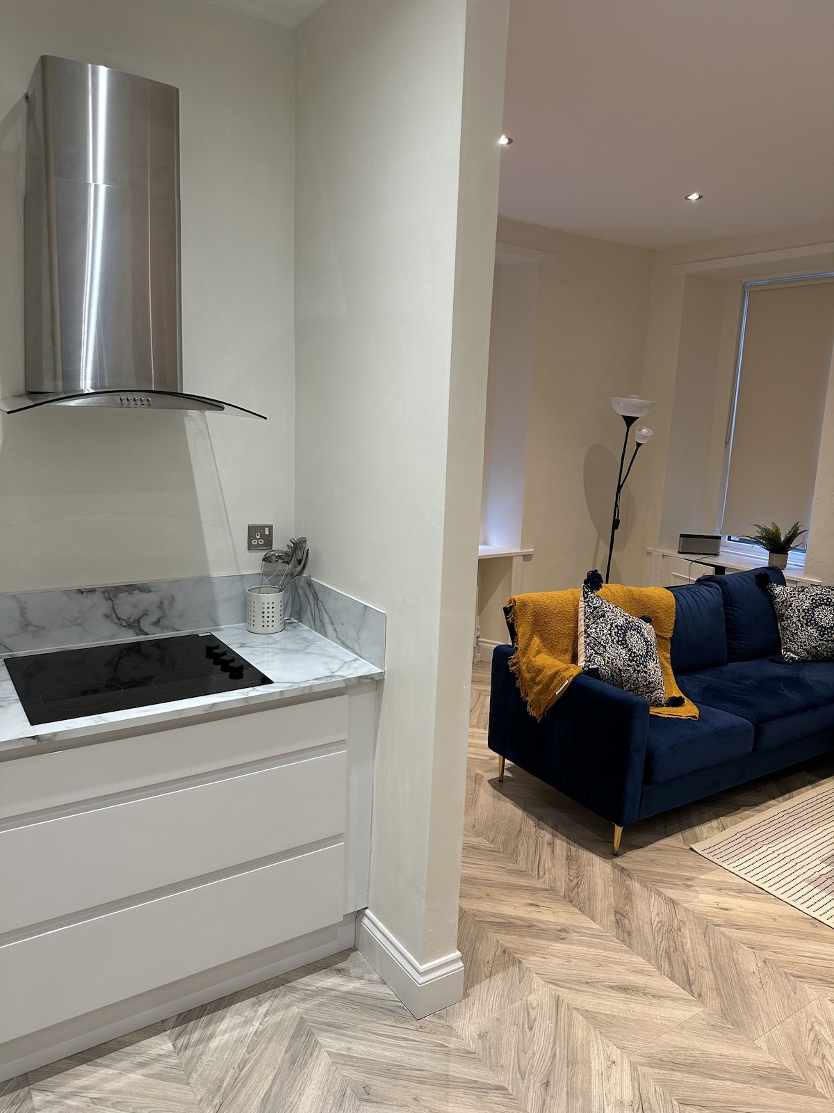 Appartement au rez-de-chaussée avec salle d'eau parfaite pour toute personne à mobilité réduite Accès facile au rez-de-chaussée pour les cyclistes et rangement sûr des vélos dans l'appartement. Emplacement idéal pour découvrir Hawick et la zone frontalière locale Situé dans le centre-ville et à proximité de l'arrêt de bus central. Les supermarchés Morrisons Aldi sont à 10 min à pied Cafés et pubs de rue haut de gamme se trouvent tous à moins de 10 minutes à pied Des aliments de base seront à votre disposition. Canapé convertible dans le séjour