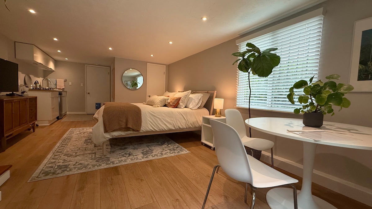 Le studio a été récemment rénové avec des finitions modernes, un éclairage amélioré et un aménagement propre et moderne. Évadez-vous dans notre suite privée confortable et moderne dans un quartier calme de Castro Valley. Parfait pour 2 personnes, ce studio dispose d'une entrée privée, d'une kitchenette et d'un lit queen confortable. Profitez d'une arrivée autonome facile et d'un patio privé. Vous êtes à seulement un mile de la magnifique randonnée et du kayak au lac Chabot. Wifi haut débit inclus pour le travail ou le streaming.