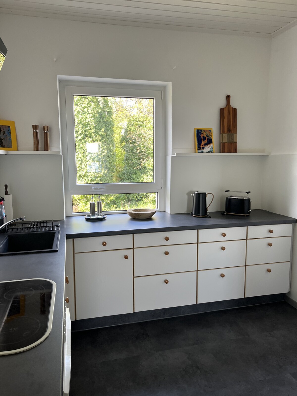 La maison basse énergie nouvellement construite avec un espace de vie de 100 m² est idylliquement située au milieu de la nature et dispose d'une cuisine de haute qualité, d'un chauffage par le sol et d'un parquet en bois véritable dans toute la maison, d'une salle de bain de jour avec douche au niveau du sol, d'un lit king-size (200x180 cm) et d'un salon spacieux et lumineux avec poêle suédois. À souligner sont les 2 terrasses en direction du sud et de l'ouest avec jardin privé et belle vue au loin et tranquillité absolue (pas de lumière artificielle).