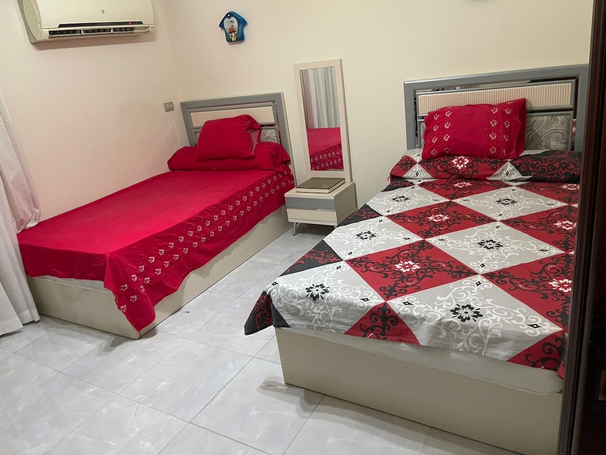 ⁃ Bienvenue dans notre appartement privé de 3 chambres dans le quartier d'El-Zaytoun, l'un des meilleurs quartiers du Caire ⁃ toutes les installations de transport autour. ⁃ 10 minutes de l'aéroport du Caire, 5 minutes à pied de la station de métro, 5 minutes à pied de Starbucks et de l'hypermarché Royal House ⁃ Tous les services dont vous avez besoin sont à proximité. У Cuisine entièrement équipée avec balcon et 2 salles de bains. 5 climatiseurs, WiFi fiable et balcon confortable, 7ème étage avec ascenseur et 3 chambres privées et 3 lits et un salon complet