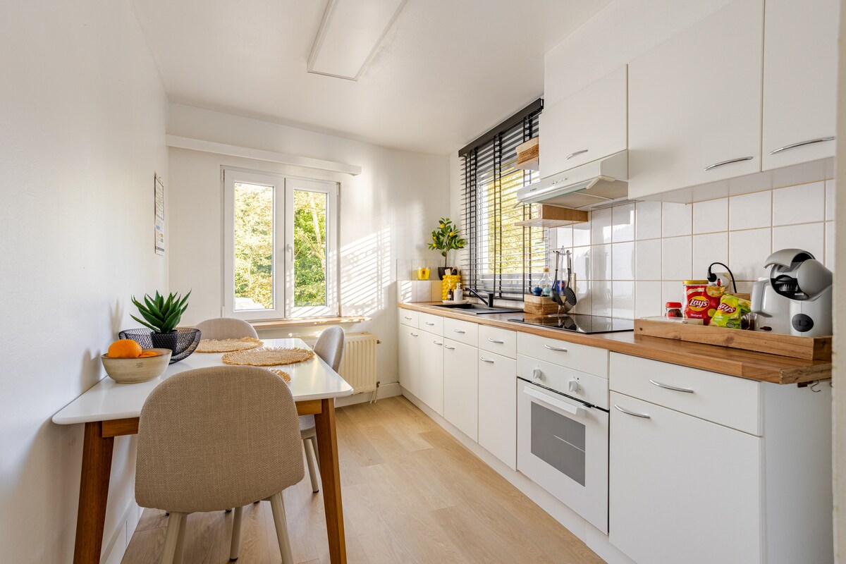 Welcome to this charming apartment on the 2nd floor of an authentic house. It is spread over two levels and connected by a shared staircase. The layout divides your private bedroom and bathroom on one side and your private living room and kitchen on the other. Located on the second oldest street in Antwerp, this neighbourhood is surrounded by green parks. Thanks to excellent public transport connections and a shared bike station, you are just 15 minutes from the centre.