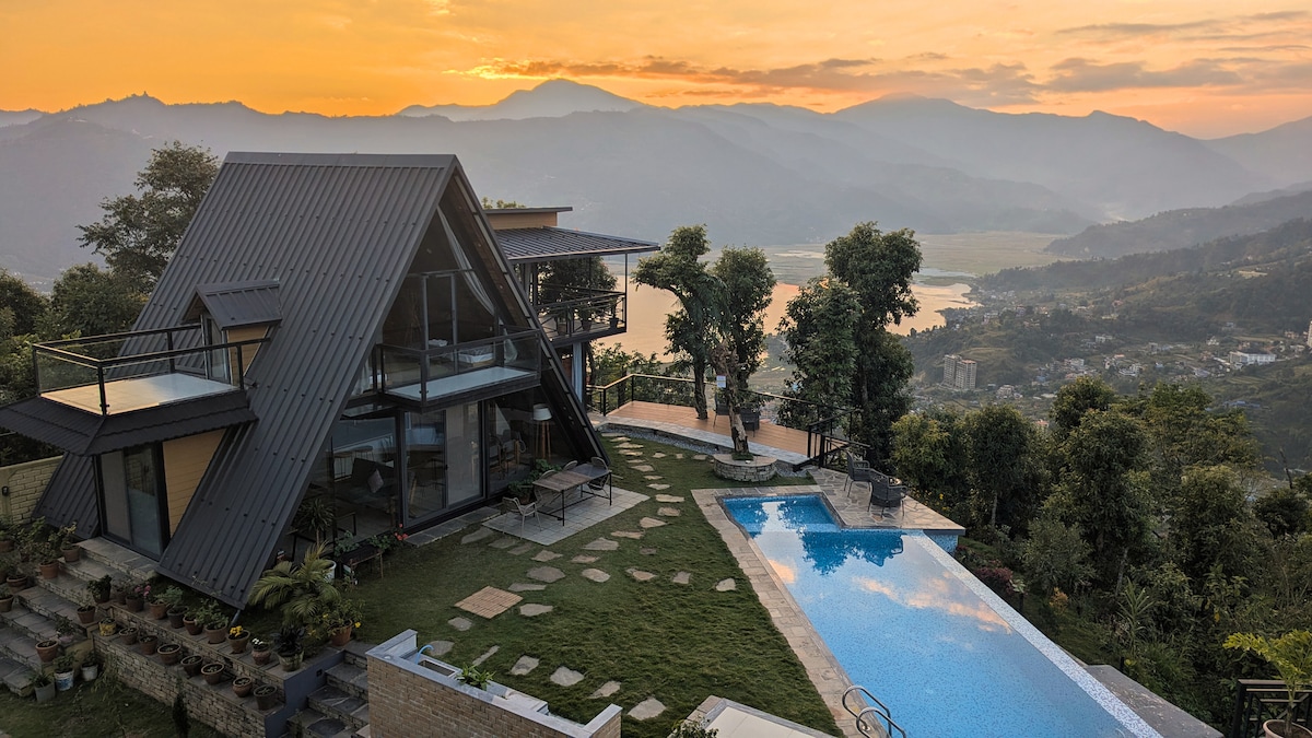 The Pipal Tree Pokhara, Mountain Villa w/ Pool Our A-frame cabin invites you to slow down, pause & reconnect with yourself amid the tranquil mountain setting. 💥 No speakers or Parties ⚡✮ ✮ ✮✮ ✮ on Airbnb ▪️Behind host's residential building ▪️HillTop Location, Himalaya & Lake View ▪️The road is scenic, windy & some dirt, 3 km frm City ▪️3 Bed, 2 Bath, Lounge, Dining ▪️Corner stores 10 mins, Gorcery stores in town ▪️Tourist Car Available ▪️Swimming Pool #️⃣ @thepipaltree.pokharavilla