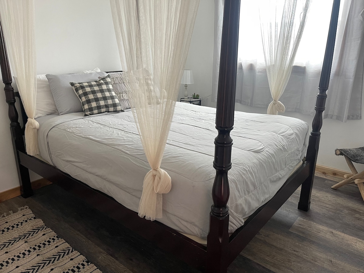 Évadez-vous dans notre magnifique cabane, où le luxe moderne rencontre le plaisir familial ! Niché dans un cadre paisible, ce havre de paix est parfait pour les familles multigénérationnelles ou les amis à la recherche de confort et de temps de qualité. C'est une cabane spacieuse, paisible et moderne. Tout est NEUF à l'intérieur : cuisine et salles de bain. Parfait pour passer du temps entre amis ou en famille. Il dispose d'un parc privé pour les enfants et vous pouvez également faire un barbecue. La propriété dispose d'un hangar fermé qui peut accueillir un bateau et fait 2,5 acres. Marina à 35 km.