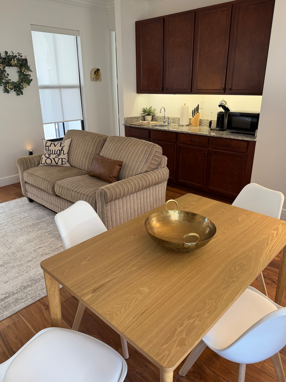Commencez votre journée avec un café gratuit avec notre machine Nespresso Vertuo ! Profitez d'une casita privée lumineuse et confortable au cœur d'Ave Maria. Parfait pour un séjour paisible, cet espace offre confort, intimité et une ambiance chaleureuse comme à la maison. Idéal pour des séjours de courte ou longue durée, avec tout ce dont vous avez besoin pour vous détendre et vous reposer. Nous sommes idéalement situés à seulement trois pâtés de maisons de l'église et à deux pâtés de maisons de l'université Ave Maria (AMU).