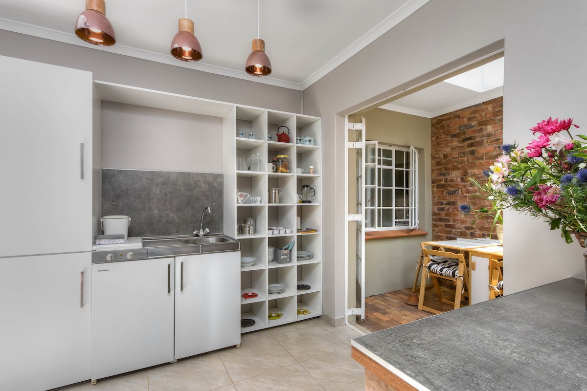 Chalet récemment rénové au bord de la piscine avec lit double avec coin salon et espace braai privé, cuisine, canapé-lit et poste de travail. ✔ Piscine à côté du jardin luxuriant ✔ 50Mpbs + télévision ✔ connectée WiFi avec Netflix Parking ✔ ombragé pour deux véhicules Espace de ✔ travail avec connexion ethernet ✔ Lave-linge ✔ Lave-vaisselle ✔ Réfrigérateur ✔ Cuisinière à gaz Four ✔ à micro-ondes Ustensiles de cuisine ✔ entièrement chargés. Situé dans un emplacement central et à proximité de toutes les commodités. Convient à trois personnes. Convient également aux séjours longue durée.