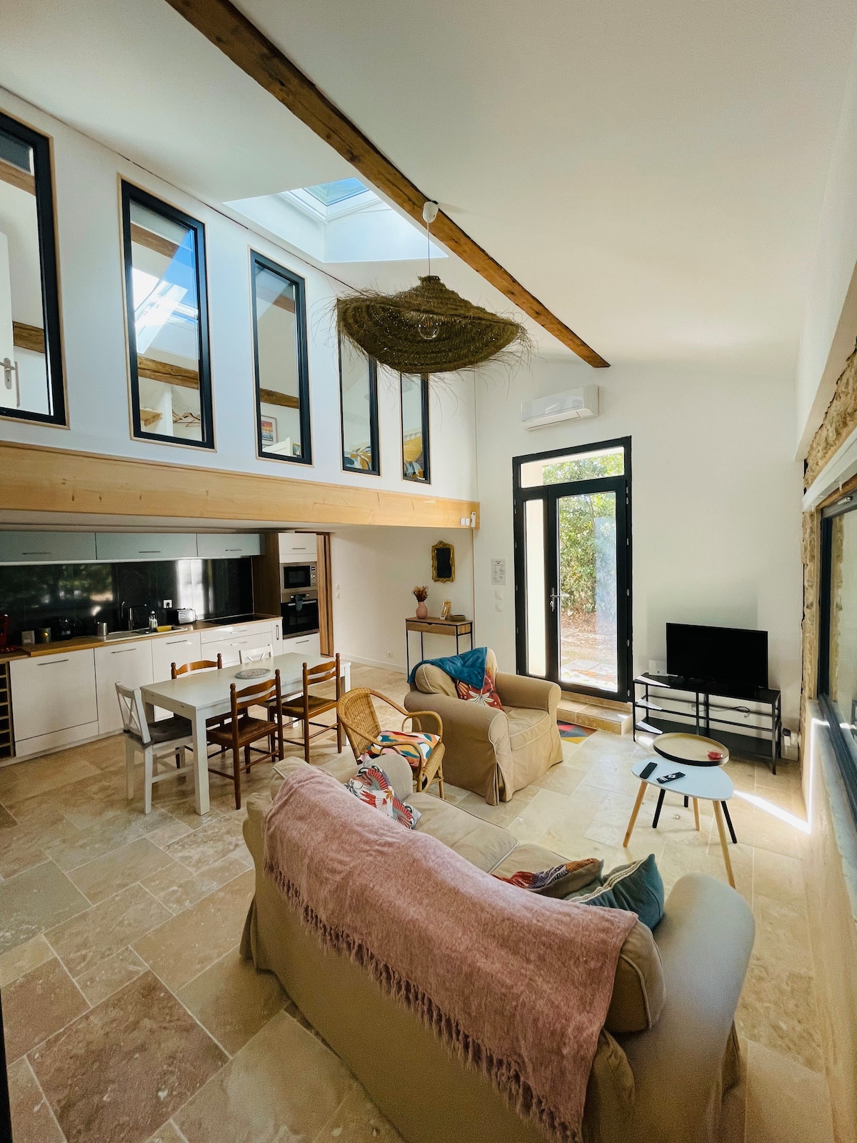 La Grange est un petit coin de paradis verdoyant, caché à deux pas du cœur du village de Poussan. Le gîte a été entièrement rénové en 2024, mêlant modernité et authenticité de la pierre. La grange se compose d'une grande pièce avec cuisine équipée qui donne sur une chambre et une salle de bains. A l'étage, une grande mezzanine fermée avec une large verrière apporte clarté et luminosité au logement. Un jardin sous les arbres permet de se relaxer et de faire quelques grillades à la plancha.