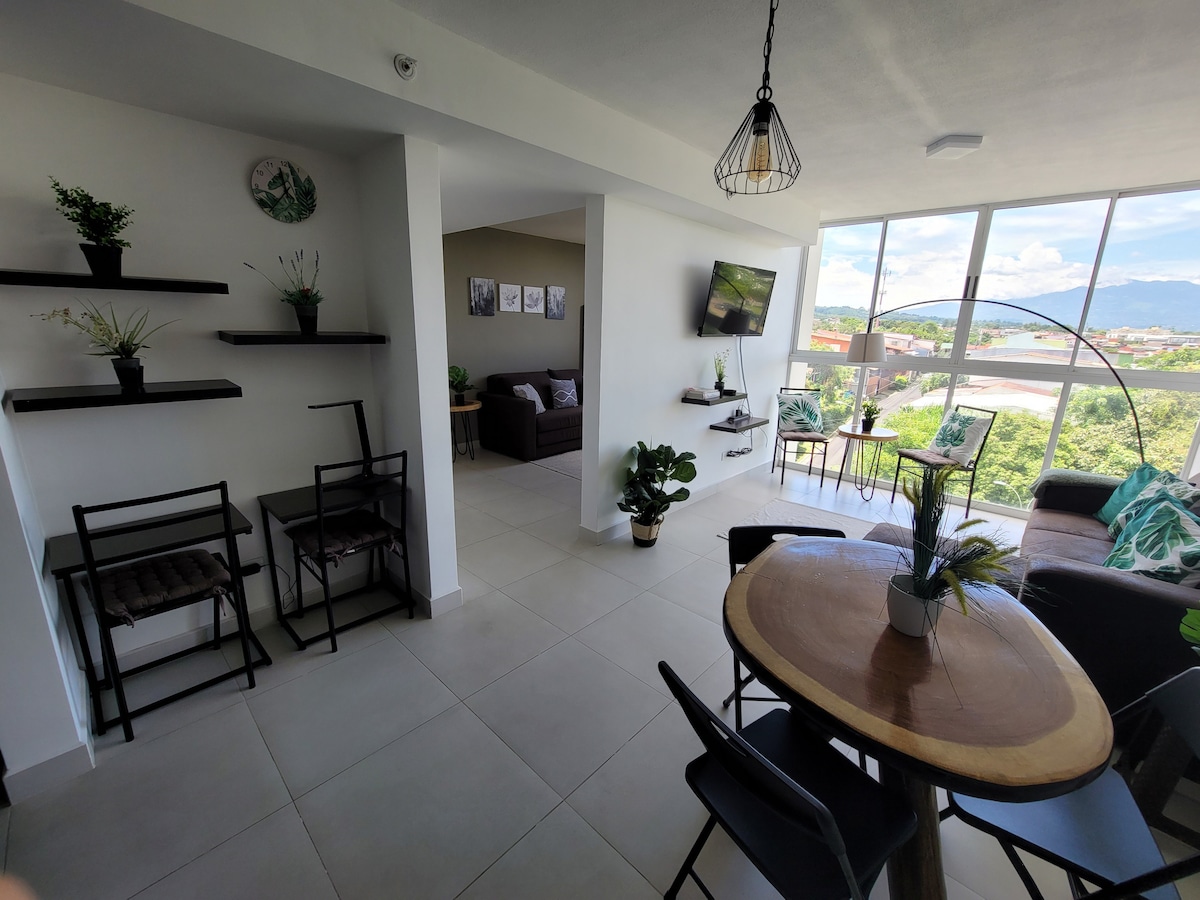 Découvrez notre appartement à 13 minutes de l'aéroport, décoré avec élégance et inspiré de la jungle costaricienne. Avec des textures organiques, des accents naturels et des touches contemporaines, il offre une atmosphère unique. Entièrement équipé avec cuisine complète, climatisation, Wi-Fi haut débit et Smart TV, il garantit un séjour sans soucis. Il comprend un parking privé et sécurisé, ainsi que l'accès aux piscines extérieures, à la salle de cinéma et à la salle de sport. Votre refuge idéal vous attend !