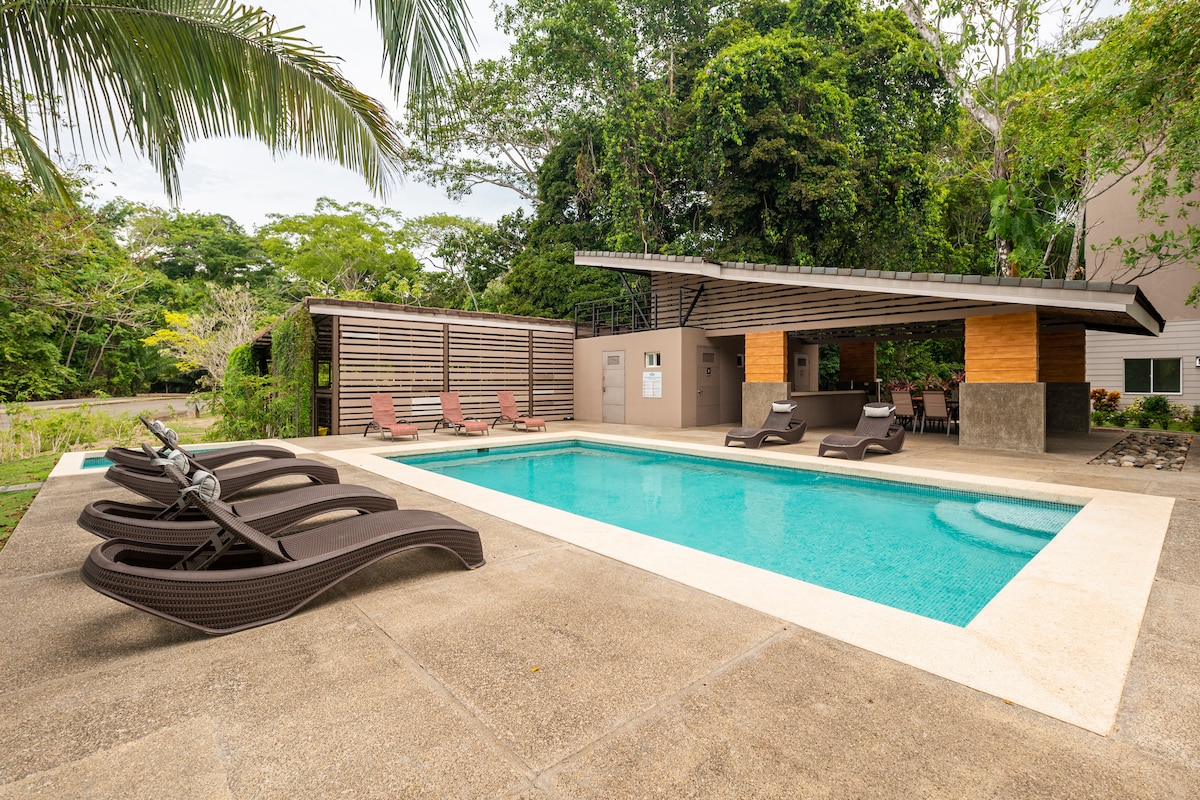 Détendez-vous dans cet appartement calme et élégant en bord de mer ! Où Pura Vida rencontre la modernité et se heurte à la tranquillité de la nature. Bénéficiant de 2 piscines en bord de mer, d'une terrasse avec barbecue, ponctuée par sa terrasse sur le toit ; son pinacle avec une vue imprenable sur l'océan Pacifique. Plongez dans notre appartement zen de 2 chambres et 2 salles de bain avec une étendue de balcons gazonnés avec vue sur l'océan pour se lever avec le soleil ou dîner au coucher du soleil. Restez en bonne santé avec un centre de fitness complet… tout cela vous attend à Jaco Beach, une plage pleine de divertissements. 🏖️