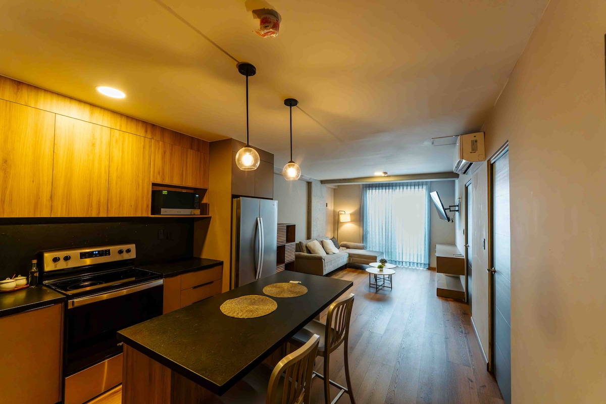 Ce logement unique dispose de suffisamment d'espace pour un séjour au calme avec les vôtres. Conçu pour votre confort avec beaucoup d'espace et d'accessoires pour que vous vous sentiez comme chez vous, avec Internet, télévision, canapé-lit, une grande pièce et deux chambres. À proximité de lieux d'intérêt tels que le consulat américain, le club de golf et les hôpitaux. Avec supermarché en bas, cafétéria, station-service et banque. Pour un séjour de plus de 5 nuits, une bouteille de vin de bienvenue est ajoutée !