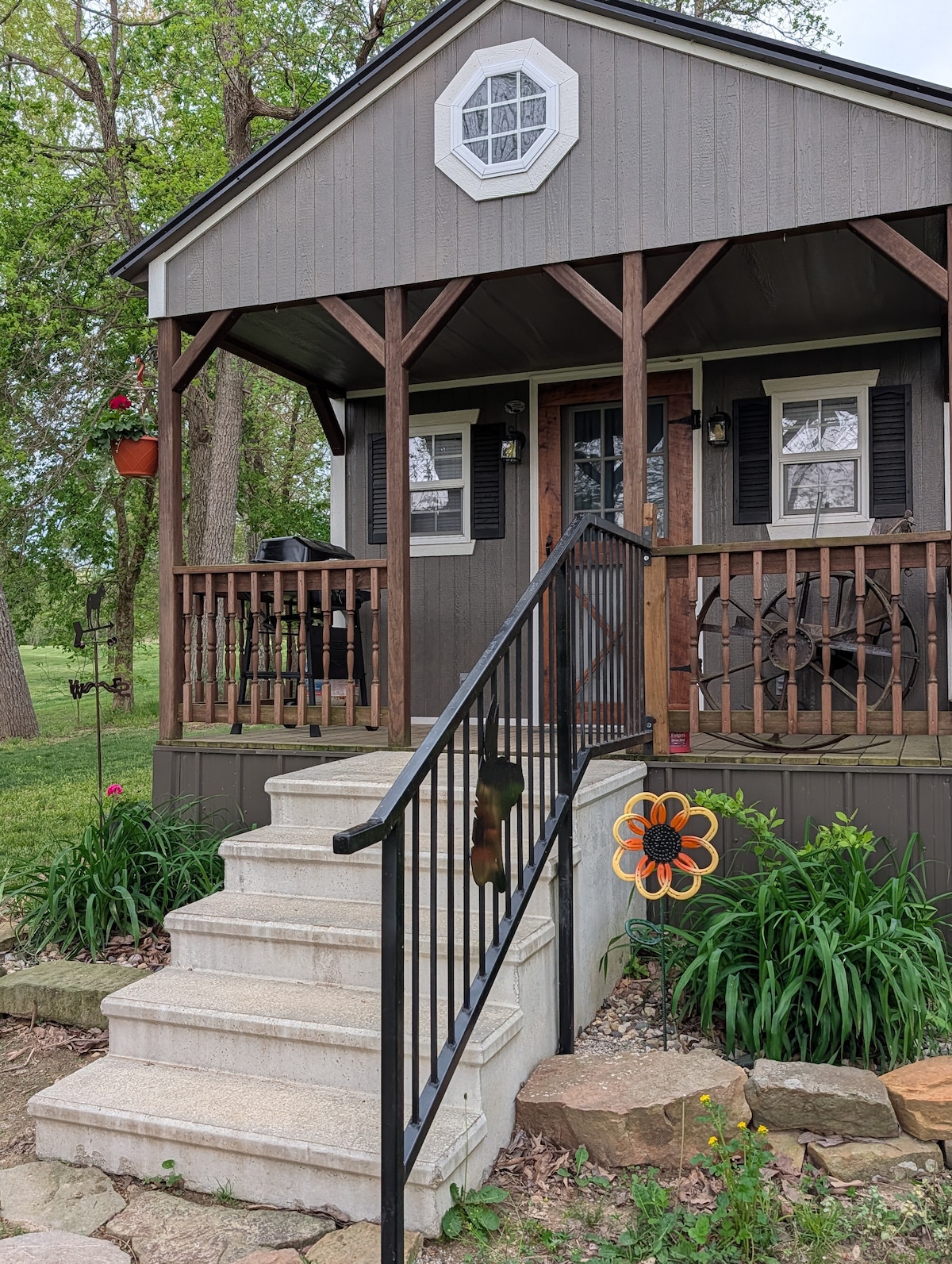 White Oak Cabin est le chalet en A du milieu sur une propriété pittoresque avec trois chalets, chacun avec son propre espace extérieur. Cette retraite confortable dispose de deux lits queen size, d'un jacuzzi, d'une cuisine équipée (plaque de cuisson + micro-ondes à convection), d'une télévision connectée, du WiFi et d'un espace de travail. Profitez d'un barbecue au charbon de bois et d'un accès à un étang entièrement approvisionné. À quelques minutes de la tyrolienne, du parc d'État de Giant City, du Shawnee Wine Trail et des terres publiques à proximité, c'est un excellent point de départ pour les couples, les amis et les petites familles qui explorent le sud de l'Illinois.
