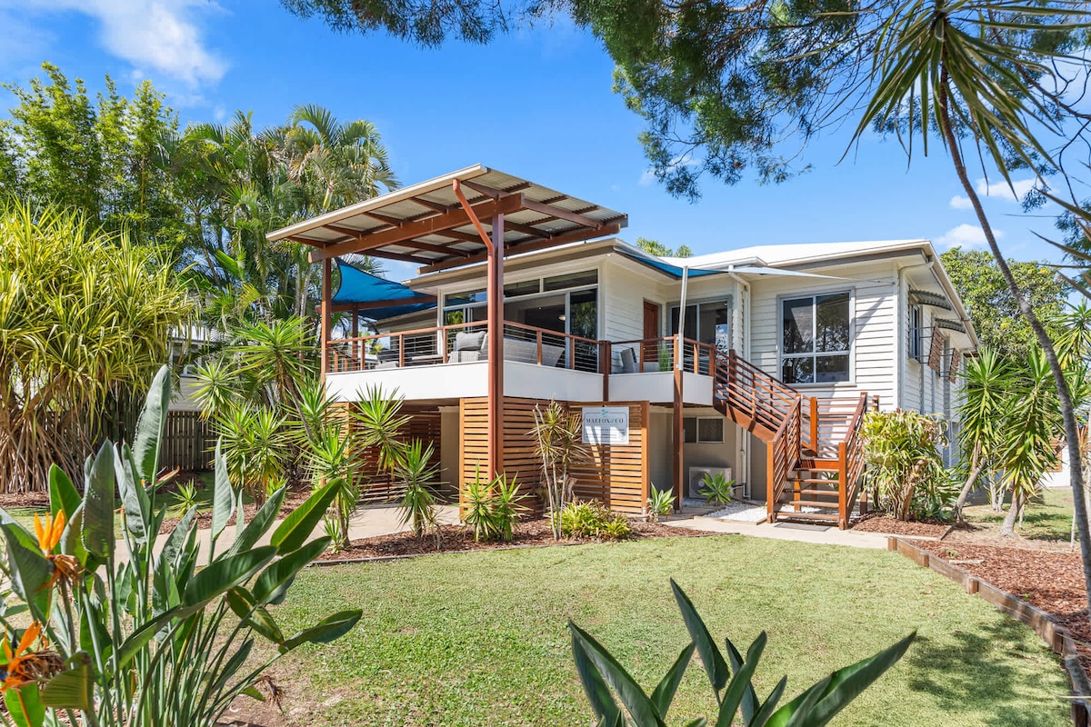 Découvrez notre superbe maison de style Queenslander avec d'énormes vérandas aérées, parfaites pour les divertissements. À quelques pas de la plage et de la marina, il dispose de 4 chambres (3 lits King Size, 1 lit simple), toutes climatisées, ainsi que d'un 5e bureau/salon avec canapé-lit Queen Size Koala. Profitez de 2 grands salons élégants, de 2 salles de bains modernes, d'une cuisine de rêve de chef avec tous les appareils électroménagers et d'une grande cour clôturée avec un parking sécurisé. Peut accueillir 10 personnes, la retraite de vacances côtière ultime.