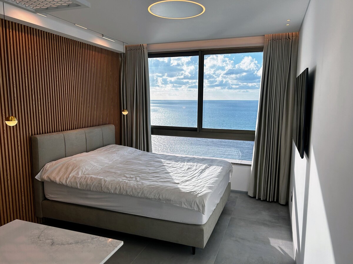 * Il y a une caméra de sécurité devant la porte de l'appartement et en outre il y a un abri anti-bombe souterrain. Que vous recherchiez un endroit pour travailler, vous reposer, vous détendre, vous faire plaisir ou simplement vous évader, vous trouverez tout ici. L'appartement est une suite spacieuse et agréable avec un balcon privé face à la mer, et à quelques pas d'une plage de baignade bien entretenue L'appartement dispose d'un espace de travail avec un bureau et une chaise d'ordinateur, une télévision connectée, et il y a également une excellente connexion Wi-Fi sans frais supplémentaires. * La suite est également adaptée aux préparatifs de mariage et dispose de tout l'équipement nécessaire.