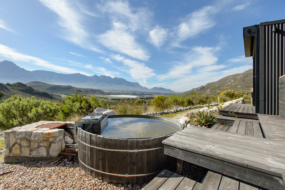 We are proud to present the cabin-living experience at its absolute finest. - A fusion of luxury, comfort, and exquisite fynbos surroundings. The Solace Cabin is nestled in an indigenous landscape on a 200 hectare farm in Rawsonville, surrounded by the Matroosberg Mountain Range.