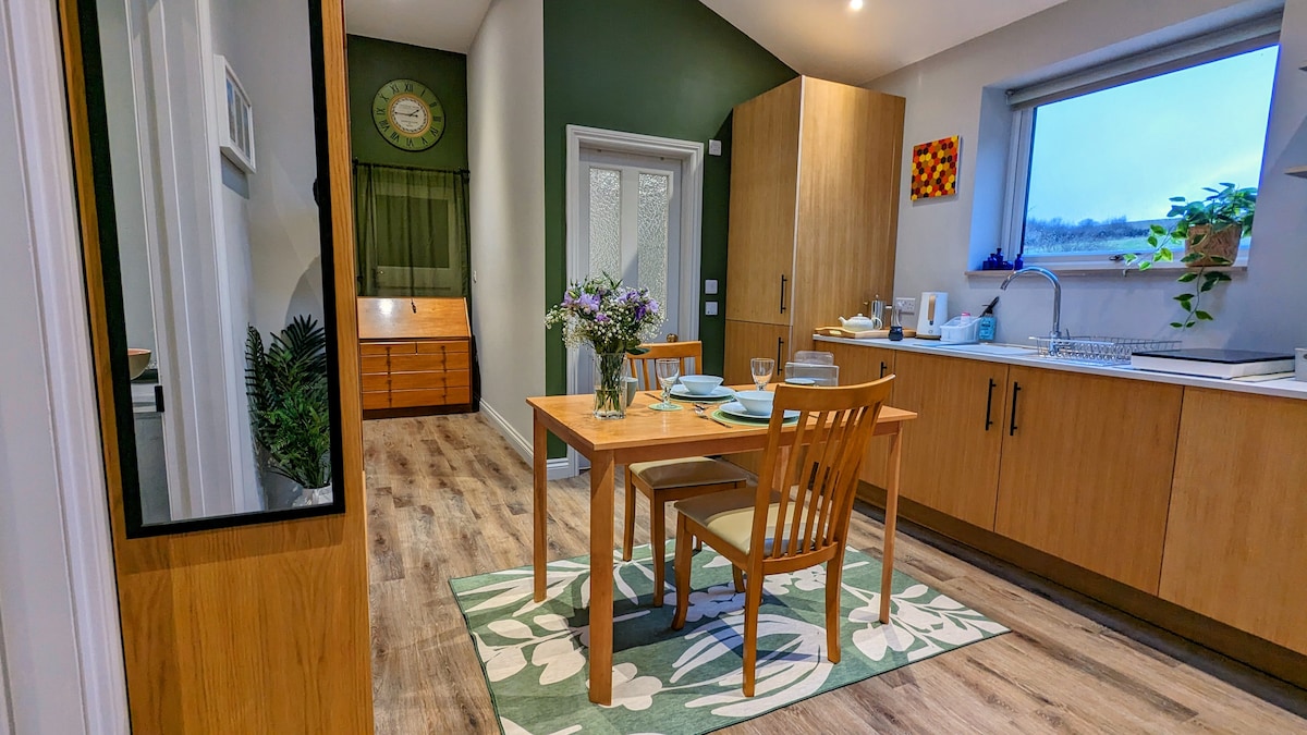 Espace neuf et moderne qui laisse entrer le soleil ! Emplacement idéal pour Bath, Bradford on Avon et la campagne locale. Il s'agit d'une « aile d'invité » indépendante en annexe à notre propre maison avec une chambre double (lit king-size), un salon et un coin repas ouverts, une salle de bain « pièce d'eau », une cuisine complète et un balcon donnant sur le jardin. Vous avez votre propre entrée privée avec une boîte à clé sécurisée, mais nous sommes juste à côté si vous avez besoin de nous demander des conseils ou si vous avez besoin d'emprunter d'autres équipements.