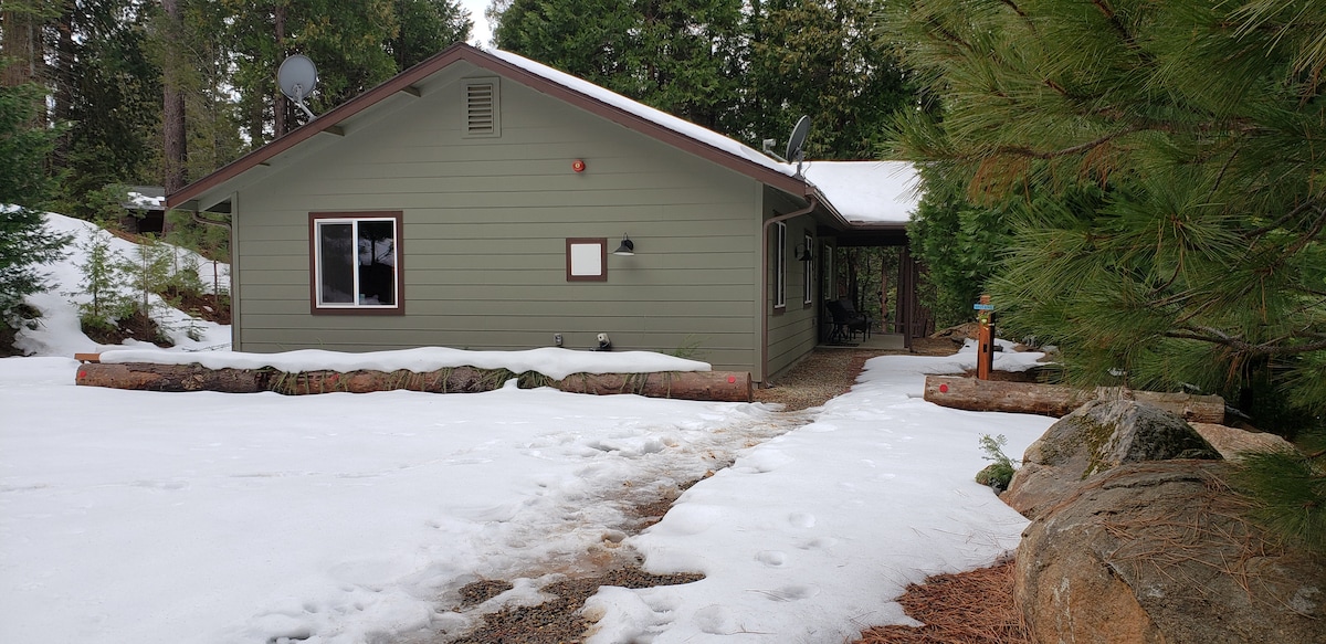 Profitez de cette retraite privée pour couples située à 32 minutes de l'entrée sud de Yosemite. Admirez un coucher de soleil sur la sierra tout en grillant sur le porche arrière. Installez-vous confortablement près de la cheminée électrique ou à l'extérieur près du brasero. Jouez au frisbee golf, au cornhole, au billard ou au ping-pong. Savourez un verre de vin tout en regardant votre émission préférée sur la télévision grand écran. Nous sommes à 7 minutes du centre-ville d'Oakhurst et à 18 minutes de Bass Lake. Conseils et randonnées avec d'anciens rangers de Yosemite
