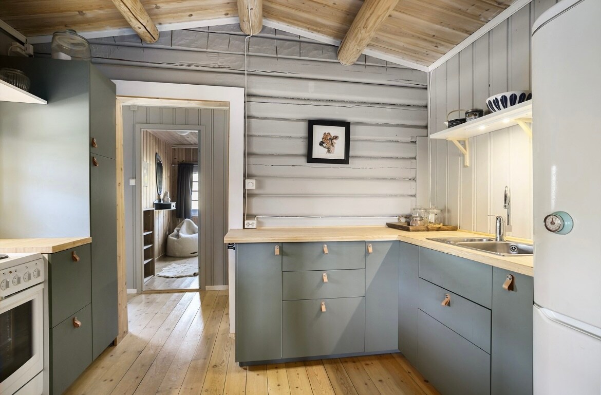 Cabane confortable dans un environnement pittoresque avec hall d'entrée, salon, cuisine, buanderie, toilettes, 2 chambres et plus. Connecté à l'électricité, à la télévision et à la fibre haut débit d'Altibox. L'eau est collectée dans le robinet du porche. La cabine n'a pas de salle de bain car il n'y a pas d'eau courante. Douche extérieure sur le côté du chalet. Poêle à bois dans le salon et beaucoup de bois supplémentaire dans la « cabane à bois ». Mobilier de jardin, barbecue à gaz, foyer extérieur et brasero à l'extérieur. Possibilités de pêche et excellentes zones pour cueillir des baies. Il s'agit d'une cabane avec un standard simple pour ceux qui aiment la nature et/ou veulent la paix et le calme.