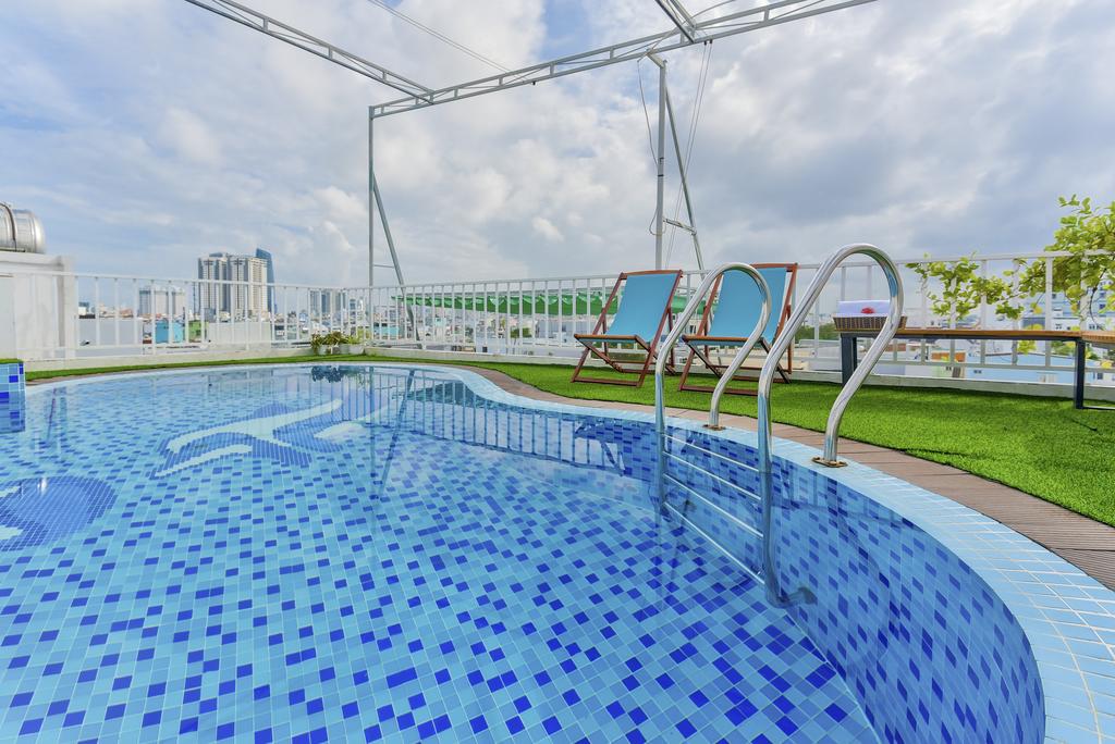 Nous sommes situés dans le centre-ville et dans une rue calme et sûre. Il comprend également une salle de sport et une piscine. Notre hôtel est pratique pour les voyages et le travail car il est dans le centre-ville et surtout, nous sommes situés dans un quartier calme et sûr. Vous pourrez apprécier votre temps dans notre jardin vert, frais et spacieux. De plus, nous avons d'autres services, tels que : location de moto, visite à pied gratuite de Danang, visites quotidiennes