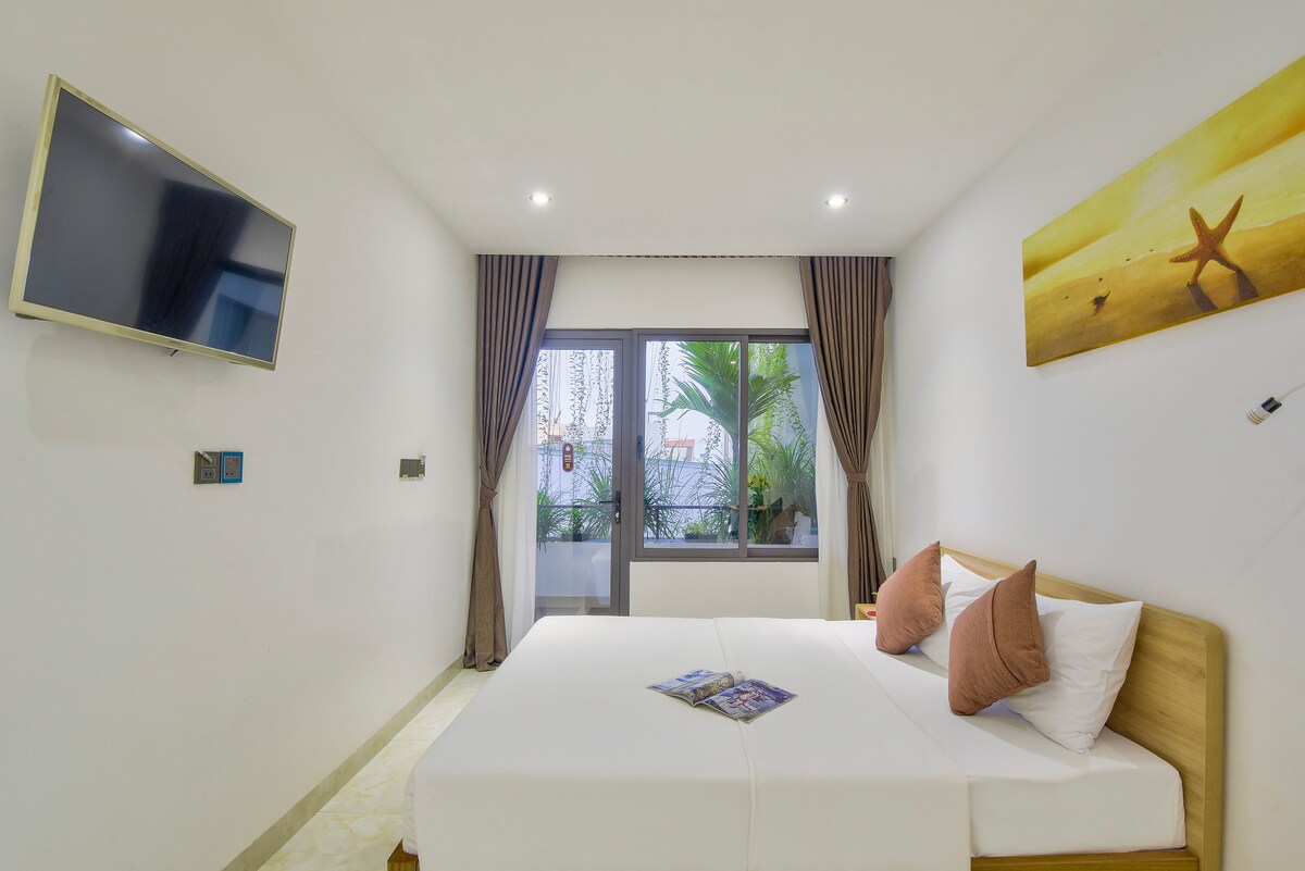***?????????????????? - Il s'agit d'une chambre double avec fenêtre, conçue pour 1 à 2 personnes, d'une superficie de 18 m2. Avec 01 lit Queen Size, installations de base complètes, WC autonome - Situé au cœur de la ville de Da Nang, l'espace paisible et propre est à seulement 300 m de l'aéroport, à 1 km de l'aéroport, sur la route principale de Nguyen Van Linh - Cau Dragon - My Khe est pratique pour voyager pour les attractions, les restaurants.