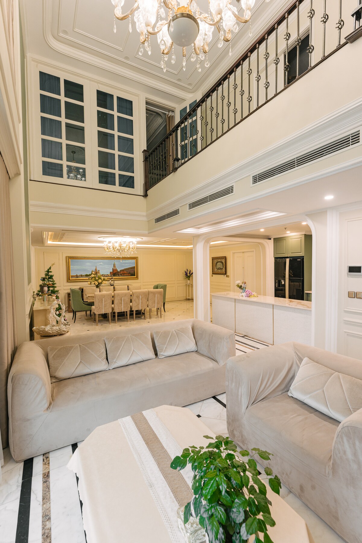 Cet appartement-terrasse de 2 étages dispose de 5 chambres. Les plus luxueux, uniques et élégants de Hanoï. Vous ne trouverez sûrement pas un autre penthouse à Hanoï. Le Duplex est situé au 36e étage du bâtiment le plus luxueux de Hanoï. Vous pourrez admirer la belle vue panoramique sur la ville de Hanoï à 150 m d'altitude de l'appartement ARRIVÉE AUTOMATIQUE ★ 24 H/24, 7 J/7 ★À seulement 50 m du centre commercial Royal City : il y a des supermarchés, des restaurants, des cafés, des cinémas CGV, des magasins,..