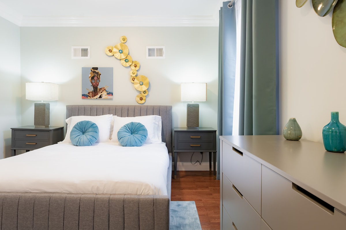 Entrez dans une maison intelligente de luxe de 3 chambres et 3 salles de bain à Jersey City où l'élégance moderne rencontre le confort. Idéale pour accueillir jusqu'à 16 personnes, cette maison dispose de télévisions connectées, d'une connexion wifi rapide, d'une buanderie, d'un parking et d'une élégante cuisine gastronomique pour compléter l'expérience. Un emplacement privilégié • Journal Square PATH : 1,8 miles (7 min en voiture) • Times Square : 4,7 miles (20 min en voiture) • Metlife Stadium à 6,5 miles (10 min en voiture !) • Liberty State Park : 3,8 miles • World Trade Center : 6,5 miles