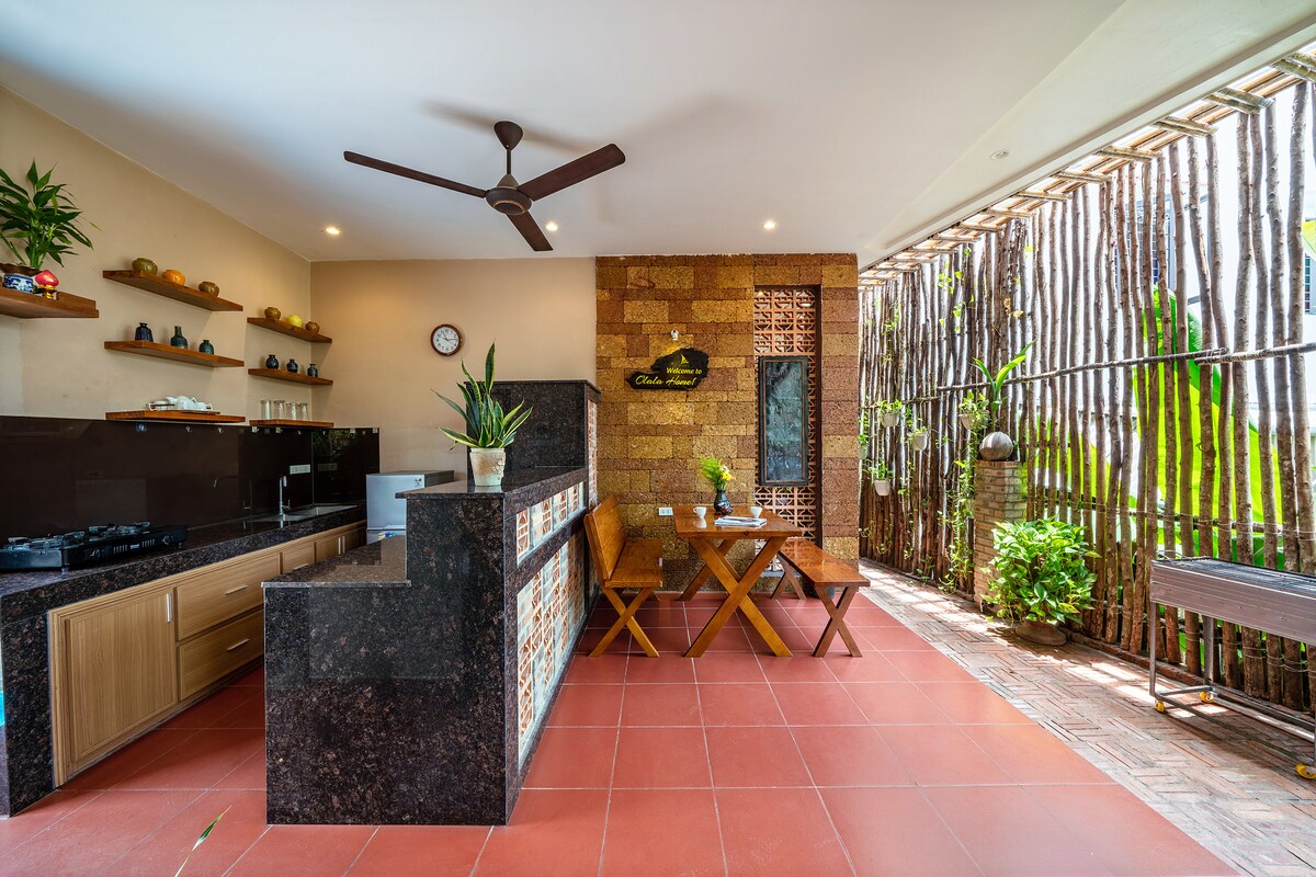 La villa YLANG GARDEN bénéficie d'un emplacement pratique et de normes de service 5 étoiles qui apporteront sûrement aux visiteurs le meilleur séjour. - La villa est à seulement 1,8 km de la vieille ville, vélos gratuits. - Située au milieu de la rivière. - À 13 minutes à vélo du village maraîcher, de la forêt de palmiers d'eau ou de la plage d'An Bang. - À 2 minutes à pied du marché local. - Ingrédients biologiques gratuits pour cuisiner - Plus de nuits avec plus d'avantages - Fourniture d'un ao dai vietnamien que les voyageurs peuvent emprunter et prendre en photos gratuitement.