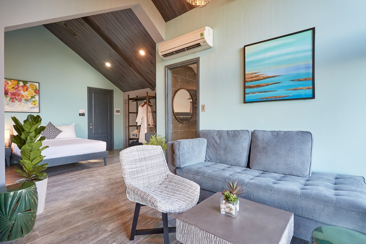 Conçu pour des escapades relaxantes et des séjours prolongés, notre studio avec vue partielle sur la mer est façonné par le mode de vie océanique. Idéal pour les couples, les familles ou les voyageurs de longue durée, ce complexe hôtelier en bord de mer vous invite à ralentir, à profiter d'une vue bleue, à équilibrer le travail et le repos et à vous sentir comme chez vous.