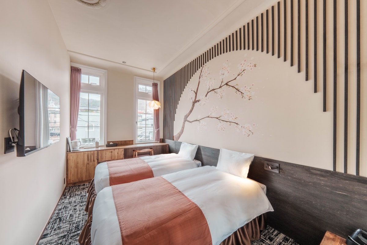 [Bâtiment historique de l'ère Taishō] Chambre aux couleurs du cerisier dans l'enceinte de Goryōkaku | Sakura | Entrepôt en briques rouges Kanamori à 3 minutes à pied