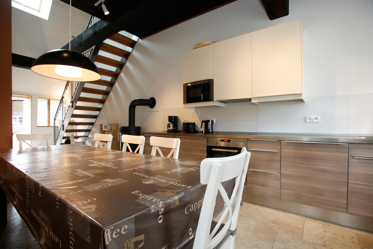 Lorsque vous cherchez une station vraiment calme et relaxante, vous allez adorer vivre dans notre magnifique vieille grange soigneusement rénovée par un architecte aimant les vieilles maisons et la technique moderne (c'est moi). Vous pouvez profiter d'une très grande télévision (avec lecteur BluRay, etc.), Internet et une cheminée confortable. Plongez dans la nature sous les vieux chênes et frênes, réveillez-vous avec le chant des oiseaux et regardez les lièvres, les faisans et les cerfs passer par les immenses portes vitrées devant la cuisine et le séjour.