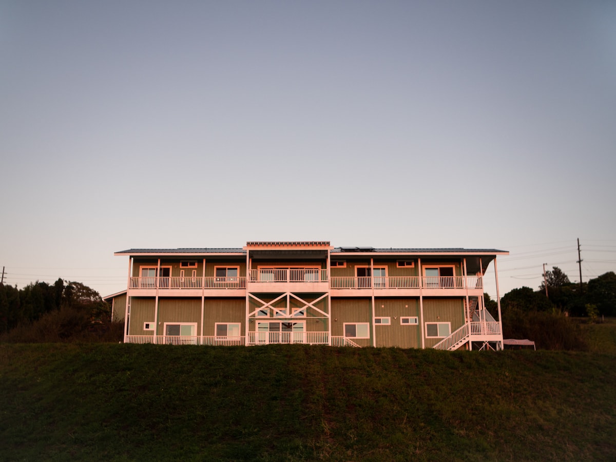 Évadez-vous dans une retraite privée de 2 chambres sur 3 acres luxuriants à Holualoa, où l'efficacité de style hôtelier rencontre le charme de l'île. Montez sur le lanai pour une vue imprenable sur l'océan, des couchers de soleil époustouflants et des brises fraîches de montagne. À seulement 10 minutes de la ville de Kona, des plages et de l'aéroport. Avec une cuisine complète, un barbecue, une table de foyer et un confort moderne, il est parfait pour les couples à la recherche d'une escapade paisible et privée avec des vues panoramiques. Préparez un dîner au barbecue, détendez-vous près du feu ou déroulez un tapis de yoga et commencez la journée dans un environnement serein