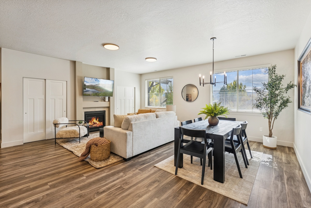 Découvrez votre retraite moderne et lumineuse à Midway ! Cette maison spacieuse est idéale pour les familles, avec un salon ouvert avec une cheminée, un coin bureau, un barbecue au gaz naturel et un balcon avec vue sur la vallée de Heber. Idéalement situé, vous êtes à quelques pas du Crater and Homestead Resort, à quelques minutes en voiture de Midway et de la pêche à la mouche de classe mondiale sur la rivière Provo. Nous sommes à 25 minutes en voiture de Park City. Profitez du confort et de la commodité de cette maison haut de gamme loin de chez vous.