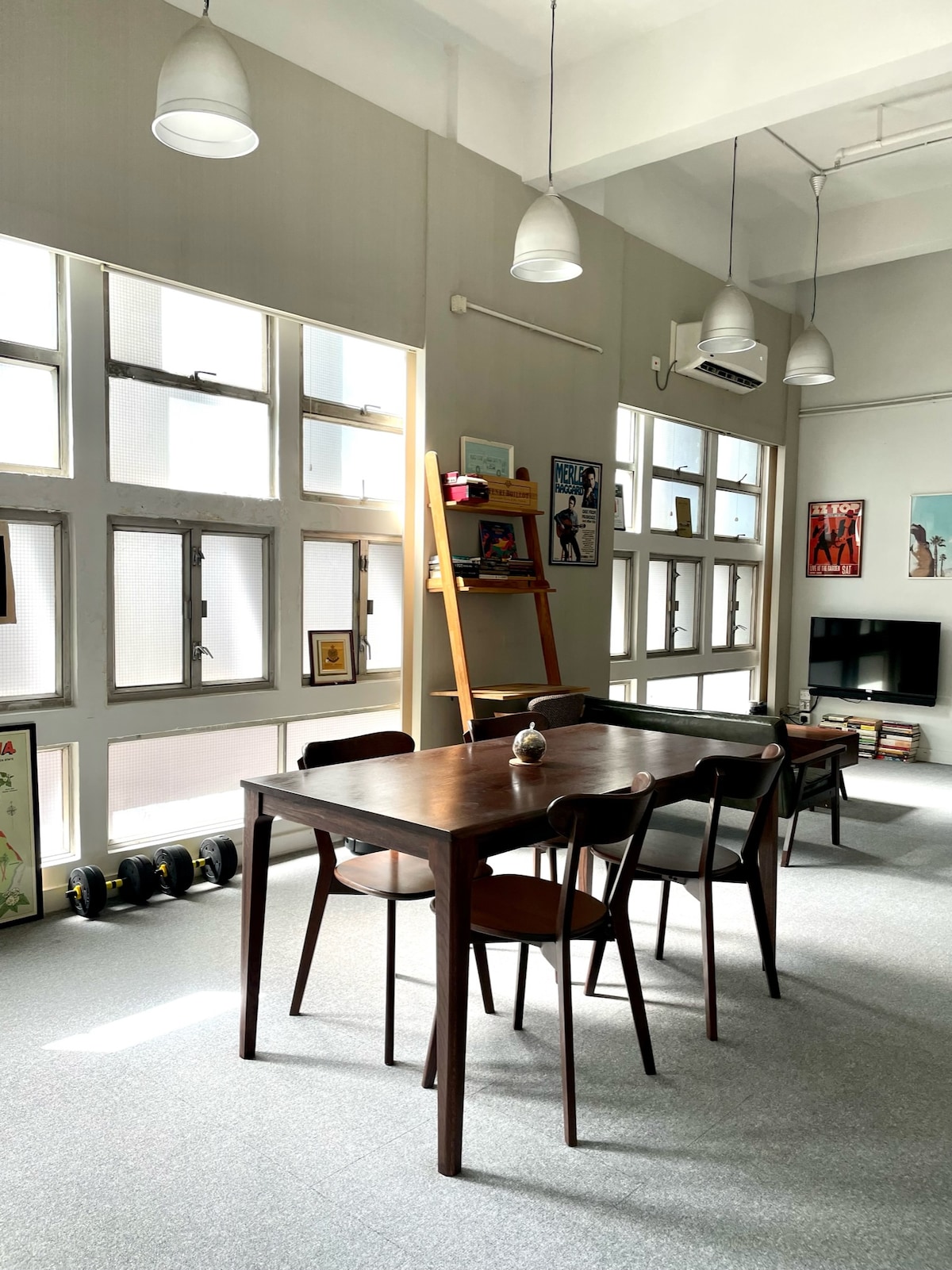 Profitez d'une expérience élégante dans cet espace commercial de style loft converti situé au centre avec un lit King Size, de la lumière naturelle, un espace de travail, un design moderne, une connexion Wi-Fi rapide et stable, un lave-linge/sèche-linge, des équipements d'exercice, un vélo pliant, un grand espace de rangement, une télévision avec Netflix et Playstation, un Roomba et un toit-terrasse. L'appartement est situé au 5e étage sans ascenseur, à 1 minute à pied de la station de métro Sheung Wan. L'emplacement est très pratique. La kitchenette est basique avec une plaque à induction, un grille-pain, un cuiseur vapeur, des ustensiles, etc.