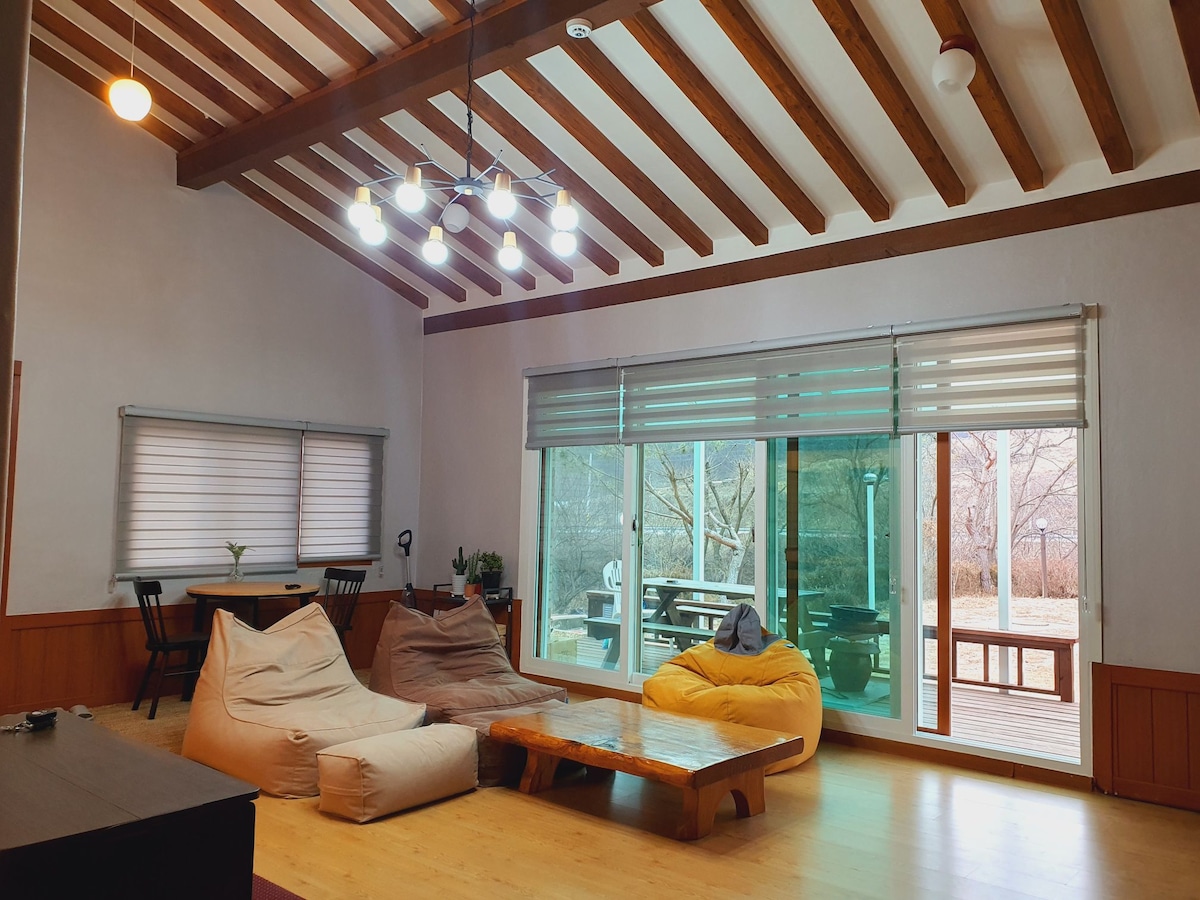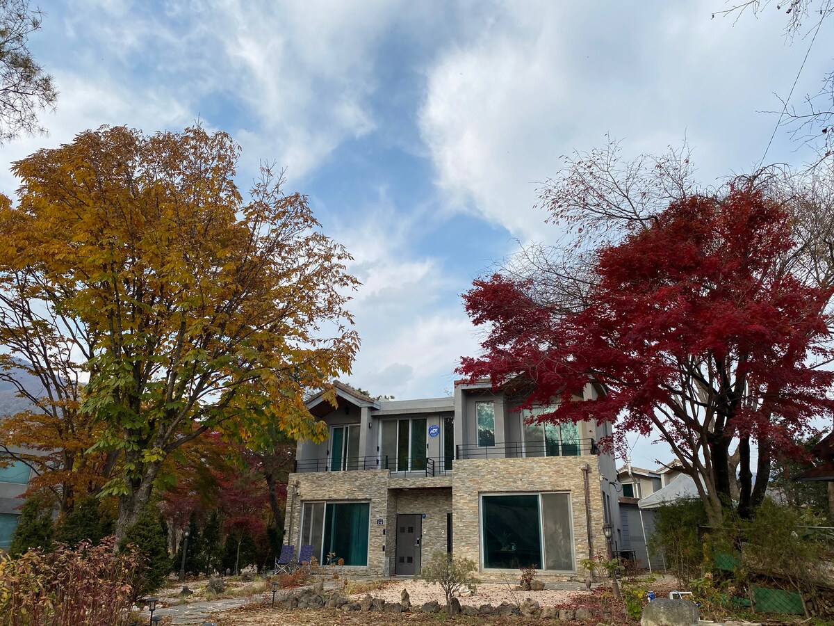 Beau village de paysages 😀 À 1 heure de Séoul Parc Vivaldi à 7 minutes Dans les bois près de la rivière Jolie maison de campagne Ce n'est pas en face à face. ^ ^ All 170 pyeong, Jardin de pelouse de 120 m ² Maison confortable 15 pyeong Jolie terrasse de 10 pyeong, barbecue disponible ! Pas de soucis pour la neige, la pluie 😄 2 places de parking privées Une pièce/salon/cuisine/salle de bain Standard 2 personnes (max 4 personnes) Personne supplémentaire, y compris la visite : 30 000 KRW Chiens de 8 kilos ou moins seulement Frais : 30 000 KRW par animal Veuillez nous contacter séparément pour plus d'un ! Je n'ai pas à me soucier du barbecue ou du foyer avec ma famille, mes amants et mes amis. Écoutez les étoiles dans le ciel nocturne, le chant des oiseaux, le bruit de la rivière et détendez-vous comme si vous campiez dans un chalet. Ce n'est pas du luxe. Venez guérir Choncang Le wifi ne fonctionne pas 😀 En hiver, si vous augmentez la température, vous pouvez l'utiliser comme un jjimjilbang. 😀 En hiver, mangez et cuisinez dans la maison. Il fait froid ^ ^ ! Arrivée : Après 15h Départ : avant 11h du matin J'ai un autre voyageur Assurez-vous de vous y conformer ! Une vie heureuse...