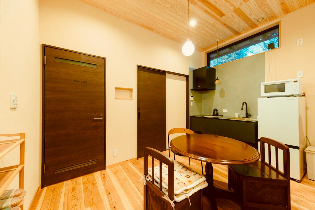 À environ 1 heure en voiture de Kyoto et d'Osaka.Il s'agit d'une petite maison d'hôtes faite à la main nichée dans un satoyama luxuriant et naturel. L'auberge n'aura plus de service de prise en charge et de dépôt pour les réservations après janvier 2026.Il n'y a pas de transports en commun, veuillez donc venir en voiture. 🚌 Si vous souhaitez être pris en charge gratuitement à la gare, veuillez consulter cette annonce (https://www.airbnb.jp/h/small-hotel-tonari-omoya).C'est l'annonce principale qui a reçu de bons commentaires. --------------------------- 🏠 Points clés concernant le logement • Espace privé à louer : il s'agit d'une vieille maison chaleureuse que le couple propriétaire a soigneusement rénovée. • Petit déjeuner Satoyama facile à savourer : œufs de poules élevées en plein air, pain, saucisses, café torréfié maison, etc. sont disponibles dans le réfrigérateur.Veuillez cuisiner pour vous-même à votre guise. • Petit bar à café : dégustez du saké local, du sirop fait maison et des boissons locales. • Vélos de location gratuits : parfaits pour se promener dans la région tout en sentant la brise. ・ Pour les cartes de crédit et divers paiements QR