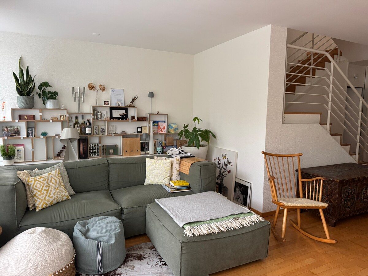 Charmante maison de ville dans le Loretohöhe de Zoug avec vue imprenable sur le lac, cheminée confortable, deux terrasses privées et un sauna bien-être. Profitez d'intérieurs élégants, d'une cuisine entièrement équipée et d'un environnement serein. Situé à deux pas des commerces, des cafés et de la promenade du lac. Idéal pour des escapades relaxantes ou des séjours professionnels. Explorez les collines derrière la maison ou louez un bateau et profitez du magnifique lac de Zoug. Confort, commodité et nature dans un endroit parfait.