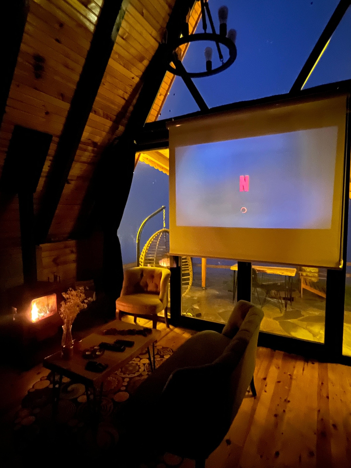 -Bungalov evimiz tamamen ahşap ve otantik olarak tasarlanmıştır. -Bungalov evimiz şömineli olup muhteşem vadi ve dağ manzarasına sahiptir. -Odamız 45 m2 genişliğine sahiptir. -Balayı çiftlerinin rahatlıkla tercih edebileceği bir konsepttedir. -Alt kat yaşam alanı şeklinde olup; balkonu, oturma grubu, banyo, tv, minibar vs üst katta ise bir double (iki Kişilik) yatak bulunmaktadır