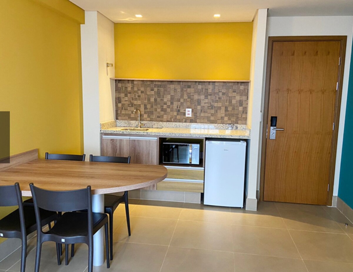 Amusez-vous en famille dans cet endroit élégant et avec beaucoup de loisirs. Ambiance nouvelle, bien décorée, avec service de ménage, le tout équipé pour que les voyageurs se sentent comme chez eux. Accès au Hot Beach Park à 40 mètres avec un supplément journalier pour l'appartement (voir les valeurs), en plus d'avoir une structure de loisirs complète dans la copropriété avec piscines chauffées. Le complexe propose un service de pension avec un montant séparé à la réception de l'hôtel.