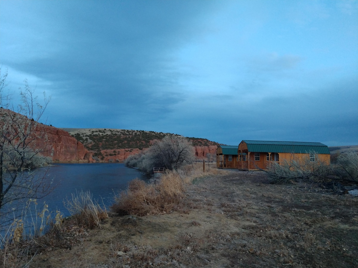 Hang your hat or kick up your spurs and enjoy a peaceful stay at the Cowboy Cabin. Listen to the gentle churn of the Big Horn River and sit on your porch and take in a picturesque sunset. The Cabin includes a king Bed – bathroom with hot water shower, heat, a/c window unit, mini fridge, microwave, coffee pot, condiments, shared picnic table, grill, and memories that last forever. A great cabin for vacationing and special moments. For additional cabin accommodations see Red Rock Cabin #2.