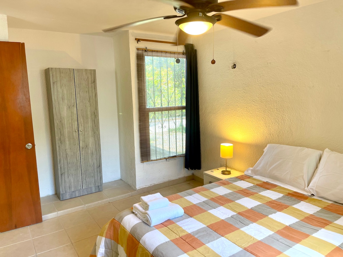 Profitez de cet hébergement au rez-de-chaussée calme et central. À moins de 100 mètres du terminal de camions ADO, à un coin de Soriana et de l'hôpital Playamed, ainsi qu'à quelques coins de l'entrée de la zone hôtelière et du port de Cancún, endroit propre, calme et sûr. Il dispose de 2 chambres avec lit King, cuisine avec tous ce dont vous avez besoin, micro-ondes, cafetière et internet haut débit. Très proche des bars restaurants, des marchés 23, 28 et du parc des palapas.