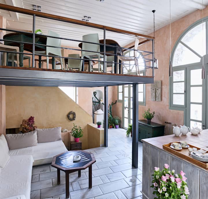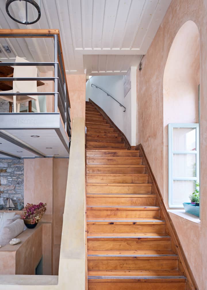 Lila Guesthouse est l'un des endroits les plus charmants pour séjourner à Syros. Situé dans un quartier calme d'Ermoupolis, à quelques pâtés de maisons du front de mer, le bâtiment du milieu du 19e siècle était autrefois le consulat français de l'île. La maison est restaurée dans un charmant style ancien et contemporain, en suivant une grande partie de sa disposition originale mais en ajoutant également un aspect moderne.